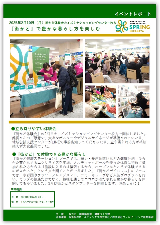 2025年2月10日(月)。『街かど体験会』の2回目を、イズミヤショッピングセンター枚方で開催しました。