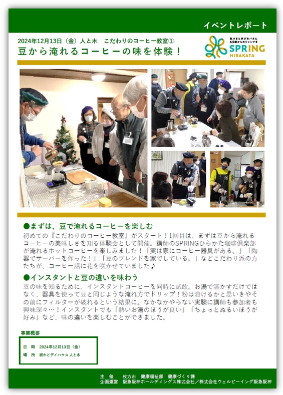 【SPRINGひらかた】人と木 こだわりのコーヒー教室01「豆から淹れるコーヒーの味を体験!」