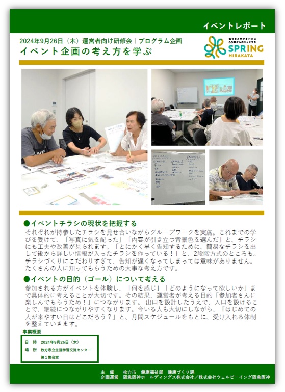 【SPRINGひらかた】運営者向け研修会|プログラム企画「イベント企画の考え方を学ぶ」
