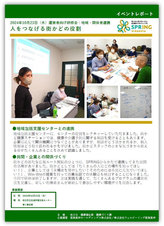 【SPRINGひらかた】運営者向け研修会|地域・関係者連携「人をつなげる街かどの役割」