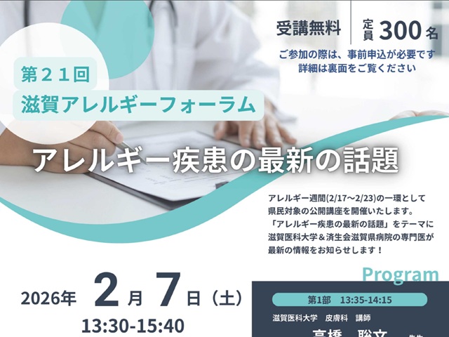 (公財)日本アレルギー協会関西支部、和歌山県、鳥居薬品株式会社が共催する「第32回アレルギー週間 市民公開講座 in 和歌山」が開催されます。