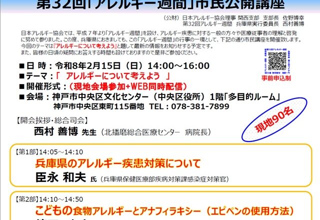 第32回「アレルギー週間」市民公開講座 in 兵庫(ハイブリッド開催)