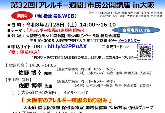 第32回「アレルギー週間」市民公開講座 in 大阪(ハイブリッド開催)