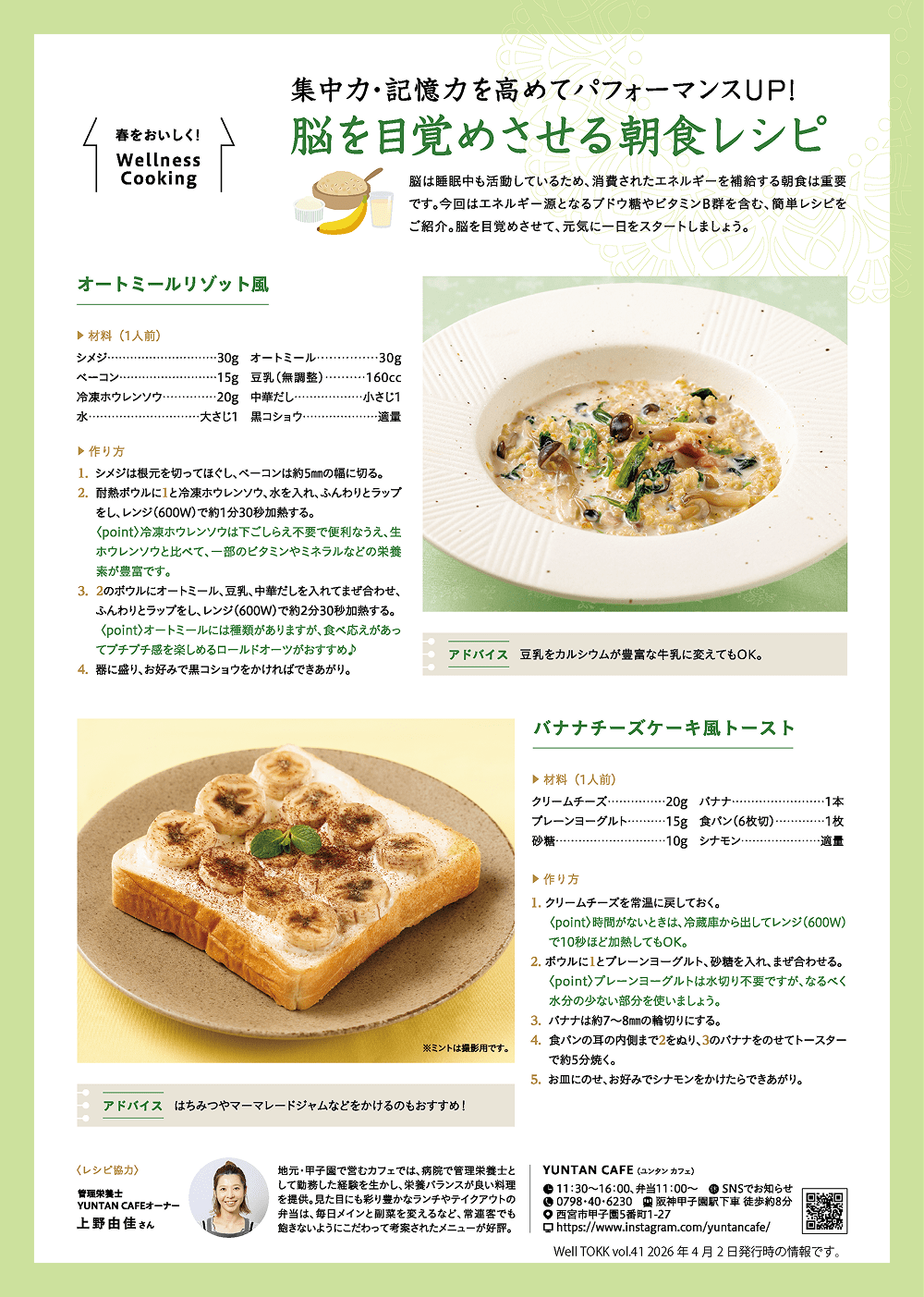 Wellness Cooking「脳を目覚めさせる朝食レシピ」